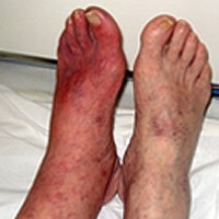 Нога у пациента с критической ишемией холодная. В горизонтальном положении бледная с спавшимися венами. При опущенном положении стопа принимает багрово-синюшный цвет, вены переполняются.